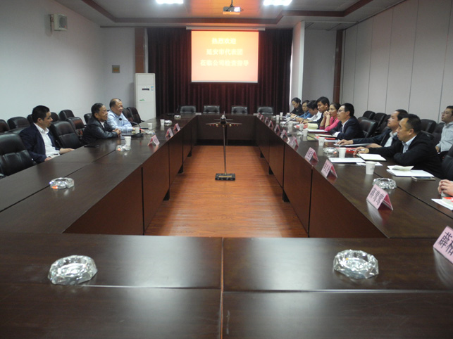 考察團一行先后參觀了成型車間、日用品車間及集團公司展廳。在隨后召開的座談會上,董事長張小赧對集團公司發展史及生產經營情況進行介紹,楊市長對延安市經濟發展情況、投資政策環境等進行了介紹,雙方就產業政策、資源要素等方面進行了交流和座談。