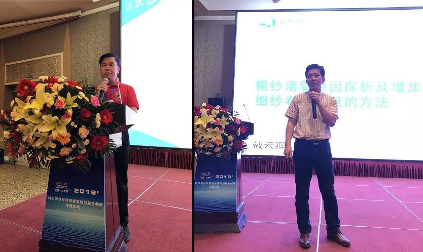 會(huì)議共有18家企業(yè)代表、專家教授分別做了特約報(bào)告、專題報(bào)告和技術(shù)講座。我公司戴云卿作了題為《粗紗落管原因探析及增加細(xì)紗卷繞容量的方法》的技術(shù)講座。紗管結(jié)構(gòu)的持續(xù)優(yōu)化改進(jìn)關(guān)系到粗細(xì)聯(lián)可靠、高效和高質(zhì)量運(yùn)行,戴總從主機(jī)設(shè)計(jì)、生產(chǎn)現(xiàn)場(chǎng)、吊錠及粗紗管4方面分析了粗細(xì)聯(lián)主機(jī)上粗紗管掉落的原因,粗紗管設(shè)計(jì)的改進(jìn)方法,以環(huán)錠紡用傳統(tǒng)205 mm經(jīng)紗管為例,卷繞形狀重新設(shè)計(jì),并從強(qiáng)度、振幅、能耗、應(yīng)用過程中是否產(chǎn)生跳管和斷裂等方面問題,用6年的數(shù)據(jù)給出了答案:即紗管質(zhì)量輕,可卷繞約6000 m紗線,每落紗延長約40 min,且節(jié)能。