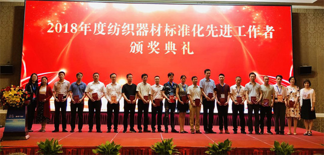 會(huì)議表彰了2018年度紡織器材標(biāo)準(zhǔn)化先進(jìn)工作者,戴云卿榮獲獎(jiǎng)項(xiàng)并上臺(tái)領(lǐng)獎(jiǎng)。