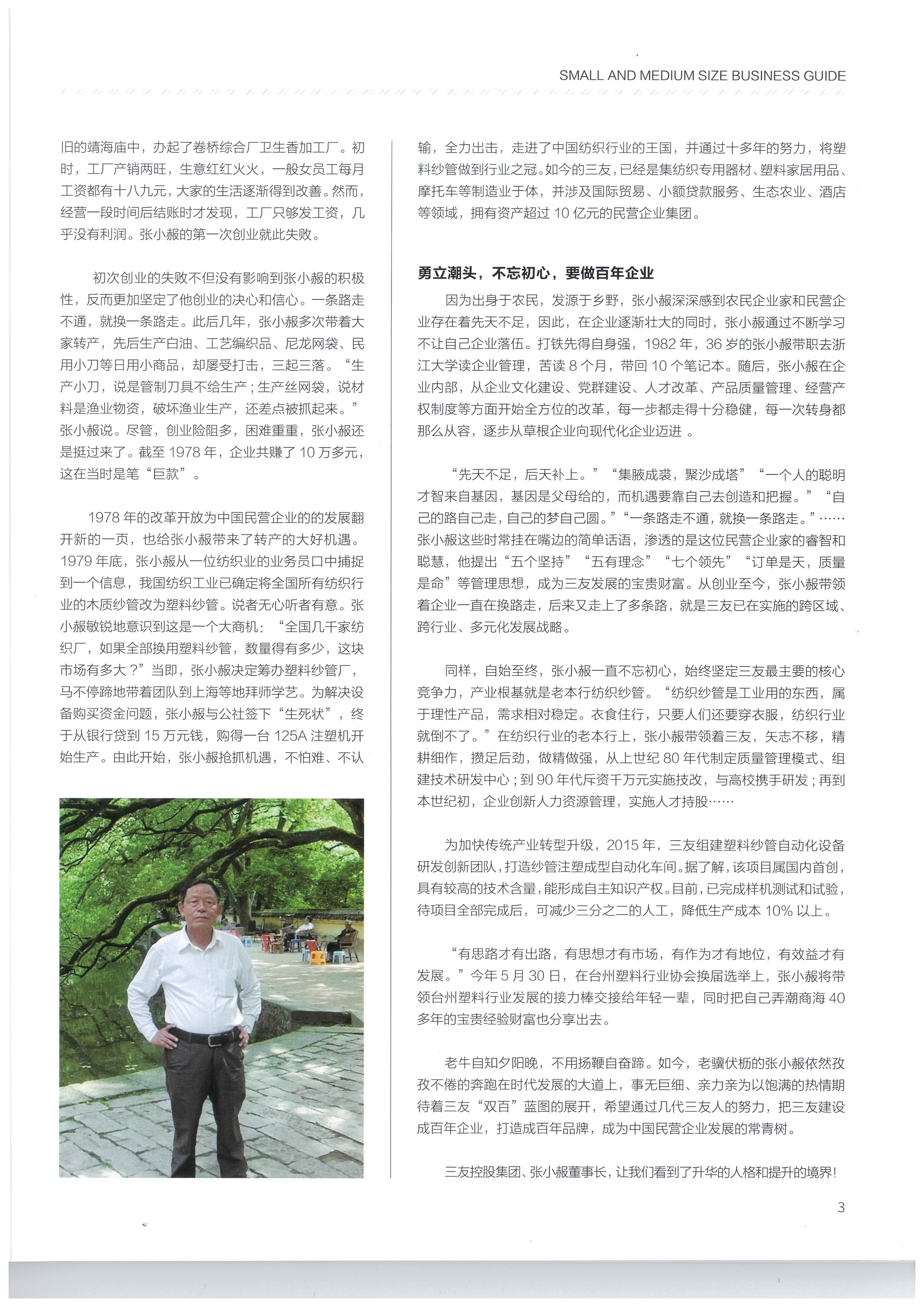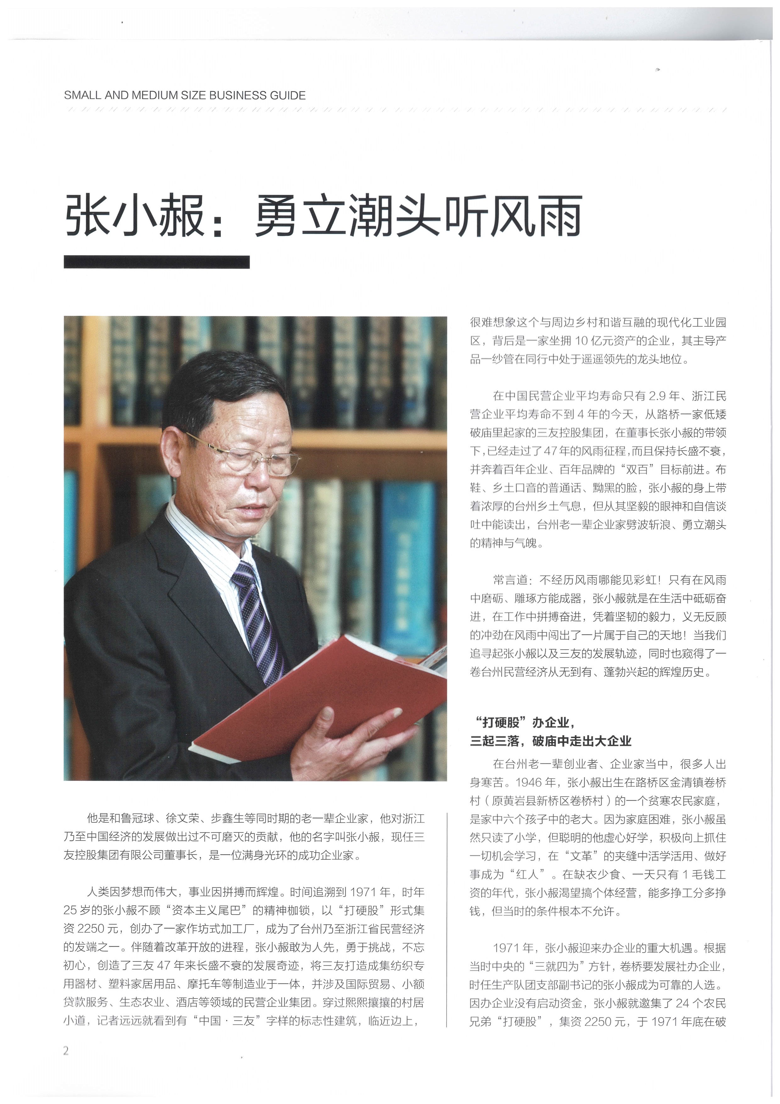 浙江省中小企業協會《中小企業導刊》刊登——三友控股集團董事長張小赧