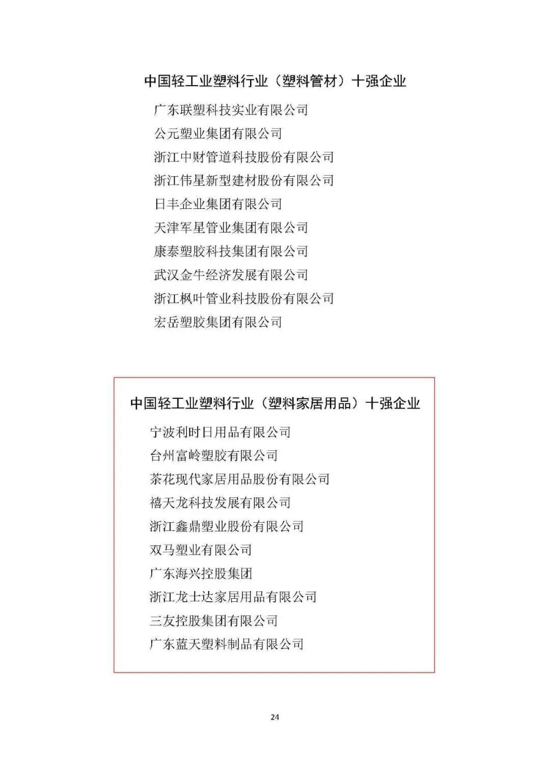 年度輕工行業十強企業評價工作中,由中國塑協塑料家居用品專委會推薦的三友控股集團有限公司經審核評定,被授予“中國輕工業塑料行業(塑料家居)十強企業”榮譽稱號。