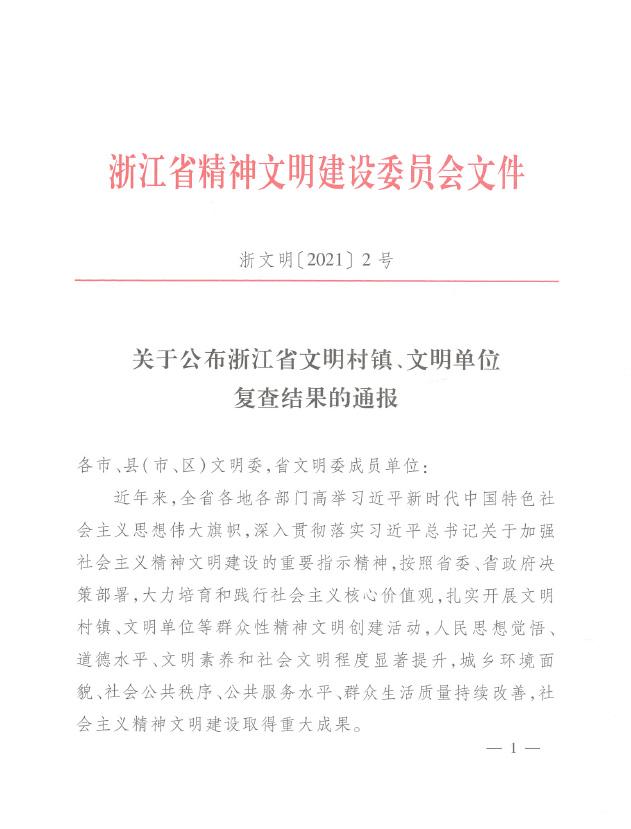 熱烈祝賀三友控股集團有限公司通過復評,榮獲“浙江省文明單位”稱號