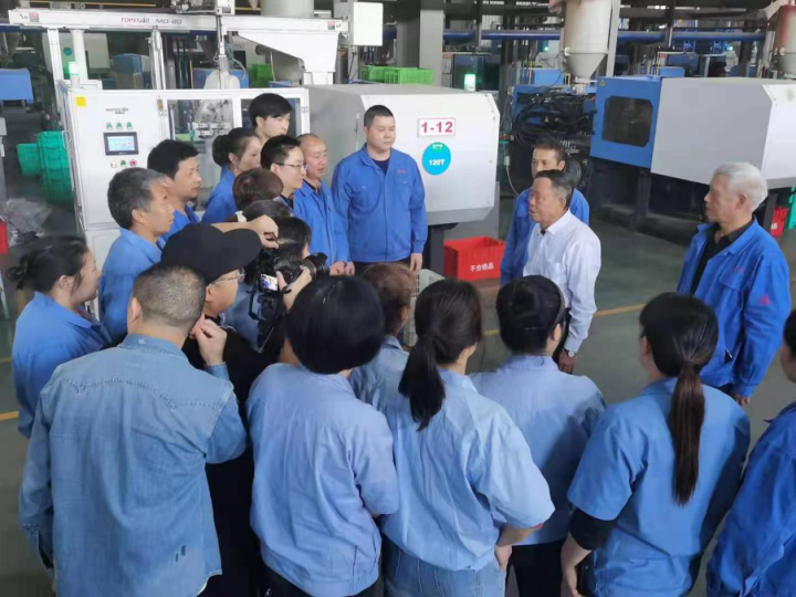 4月29日上午,在路橋三友控股集團有限公司車間里,全國勞模、集團公司董事長張小赧、浙江省勞模、集團公司副董事長蔣傳良、臺州市勞模、集團公司日用品事業部包裝主管陳輝為企業職工開展黨史宣講。