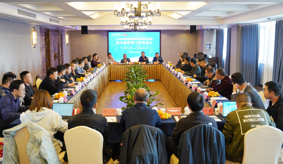 | 11月11下午,三友控股集團(tuán)塑料家居事業(yè)部供應(yīng)鏈座談會(huì)在三友國(guó)際酒店召開。集團(tuán)公司財(cái)務(wù)、采購(gòu)負(fù)責(zé)人、塑料家居事業(yè)部管理人員、FBA(中國(guó))辦事處負(fù)責(zé)人、設(shè)備供應(yīng)商代表、原輔材料供應(yīng)商代表、外加工企業(yè)代表、物流企業(yè)代表等30余人參加會(huì)議。集團(tuán)公司董事長(zhǎng)張小赧、總經(jīng)理張利敏參加,集團(tuán)公司副總經(jīng)理?xiàng)顕?guó)慶主持會(huì)議。